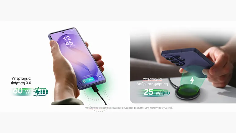 Το Galaxy S26 Ultra υποστηρίζει φόρτιση Super Fast Charging 3.0 σχεδιασμένη για να ανεφοδιάζει το smartphone σε εκπληκτικές ταχύτητες χωρίς να επηρεάζει την ποιότητα της μπαταρίας ή τον χρόνο σου. Η ταχύτερη φόρτιση που έχουμε κάνει μέχρι σήμερα.